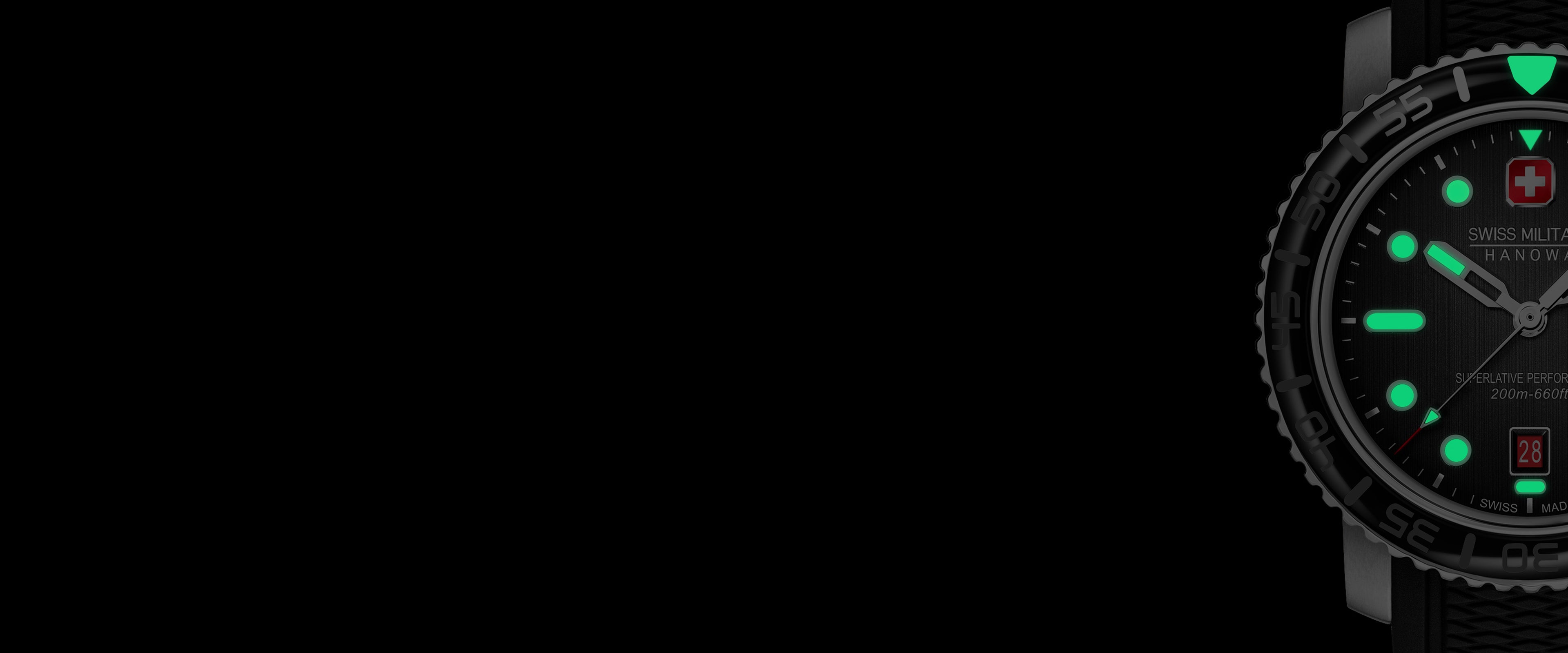 ALL SWISS MILITARY HANOWA WATCHES COME WITH LUMINOUS ON HANDS AND HOUR MARKERS. NO MATTER WHERE TIME TAKES YOU, YOUR WATCH WILL BE READABLE IN A RELIABLE WAY.